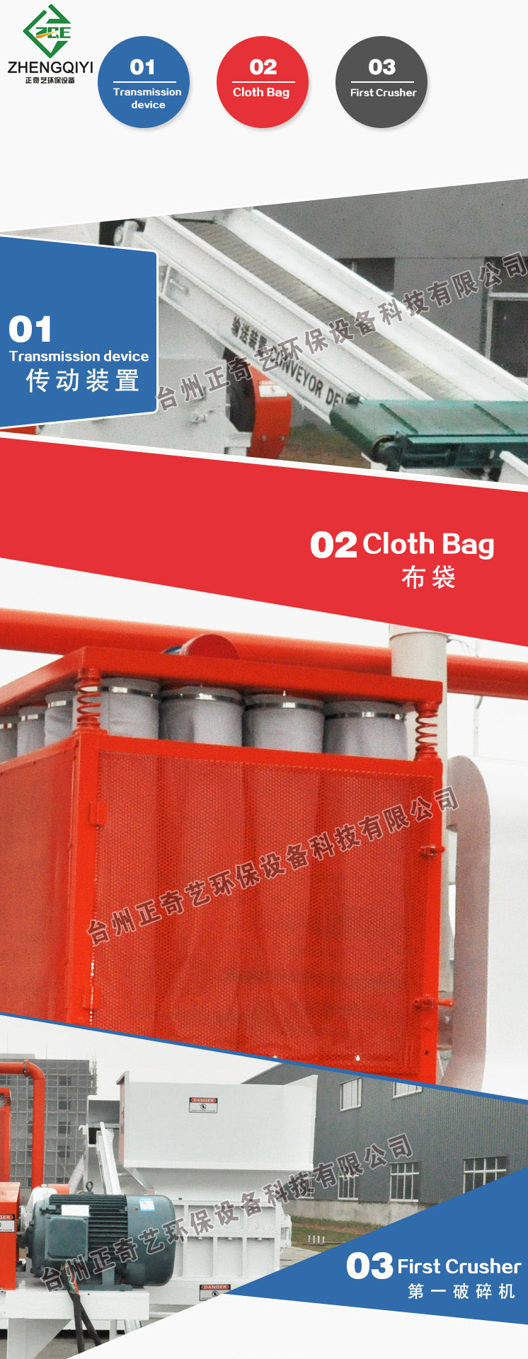 1. 结构紧凑,外型美观,布局合理,安装方便。 2. 采用PLC控制,使设备均匀进料,智能化操作,使操作变得更简便,省心省时省力,最大程度保证了设备的稳定运行。 3. 破碎机采用对辊式,低转速,高扭矩,产量大,噪音小,操作简单。 4. 粉碎机、分选设备与集尘设备采用平台组合式,使设备便于移动及运输,增加了设备的灵活性。 5. 粉碎机转子采用交替式刀轴,使粉碎机生产效率更高,噪音更低,运转更稳定。 6. 气流分选设备分选率高达97~99%。 7. 回料系统使半成品进行二次粉碎,保证了金属与非金属的完全分离。 8. 布袋集尘设备有效控制粉尘溢出,除尘效率高达99.99%。 |